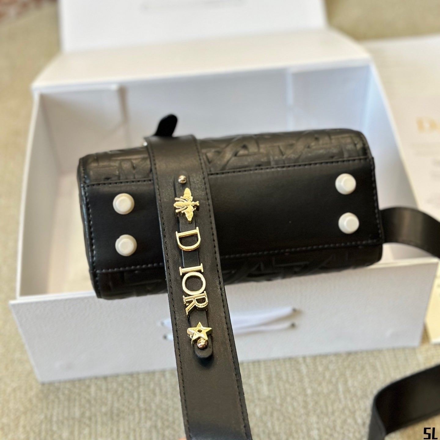 Unveiled at the Autumn-Winter 2024-2025 Fashion Show, the Lady Dior bag epitomizes the House's vision of elegance and beauty. Sleek and refined, the timeless style is crafted in black calfskin showcasing the Graphic Cannage motif, offering a modern 3D version of the House icon, while pale gold-finish metal charms lend elegant appeal. Featuring a thin, removable leather strap, the Lady bag can be carried by hand or worn crossbody.