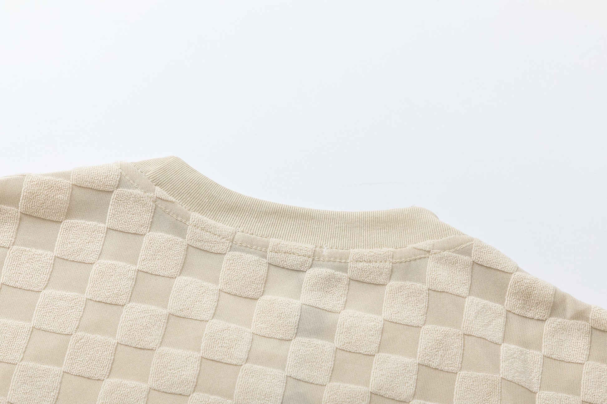 Checkerboard raised fleece cotton T-shirt