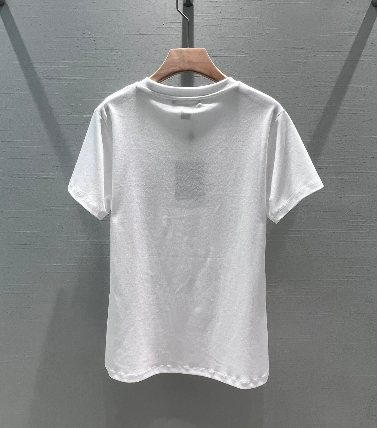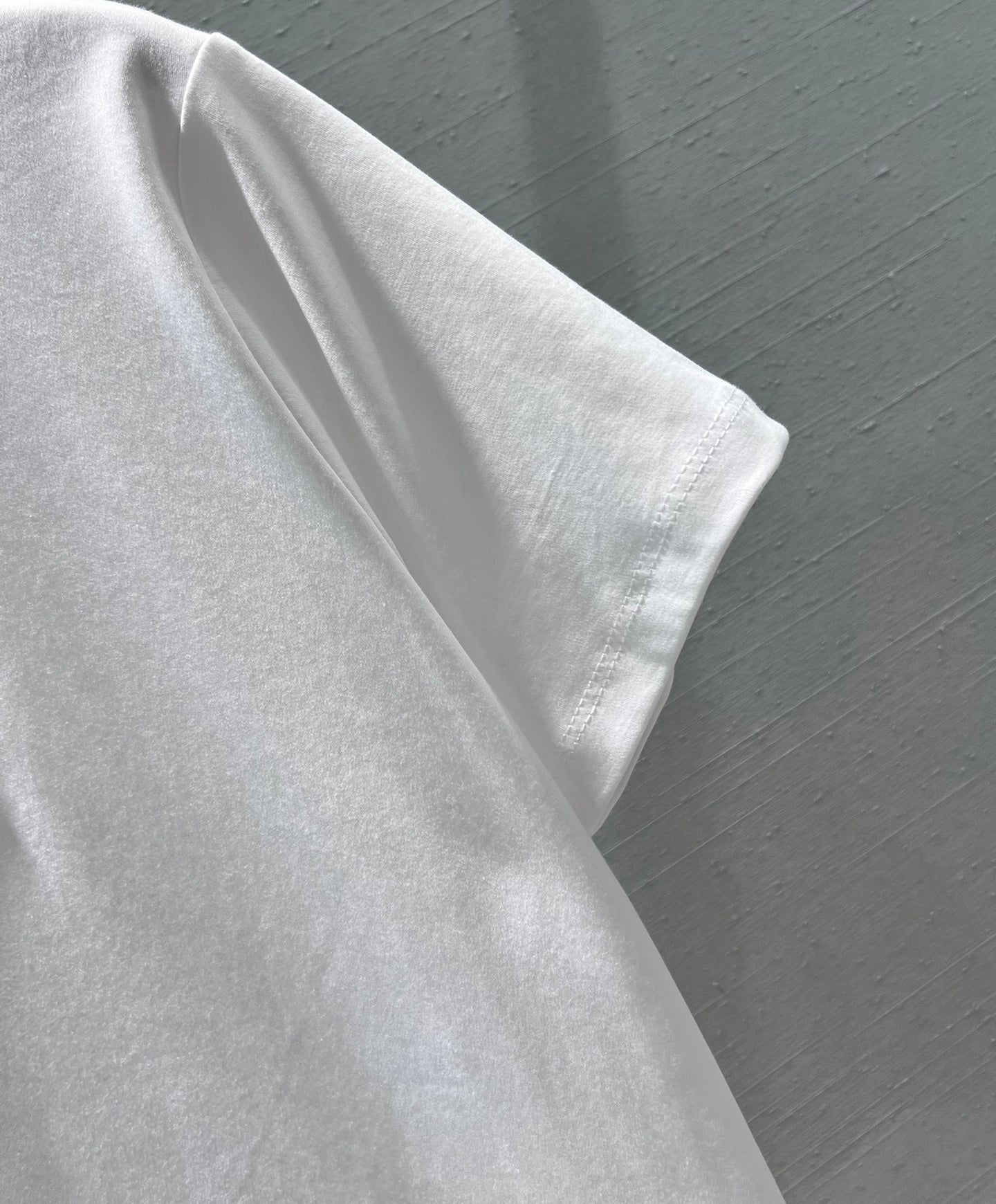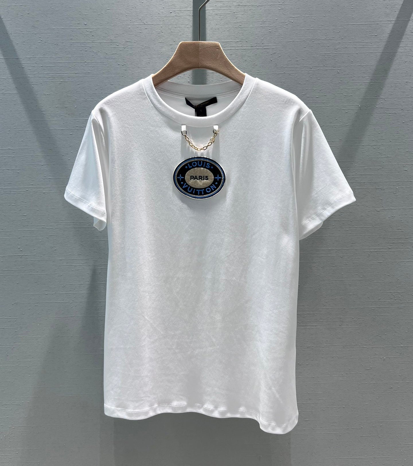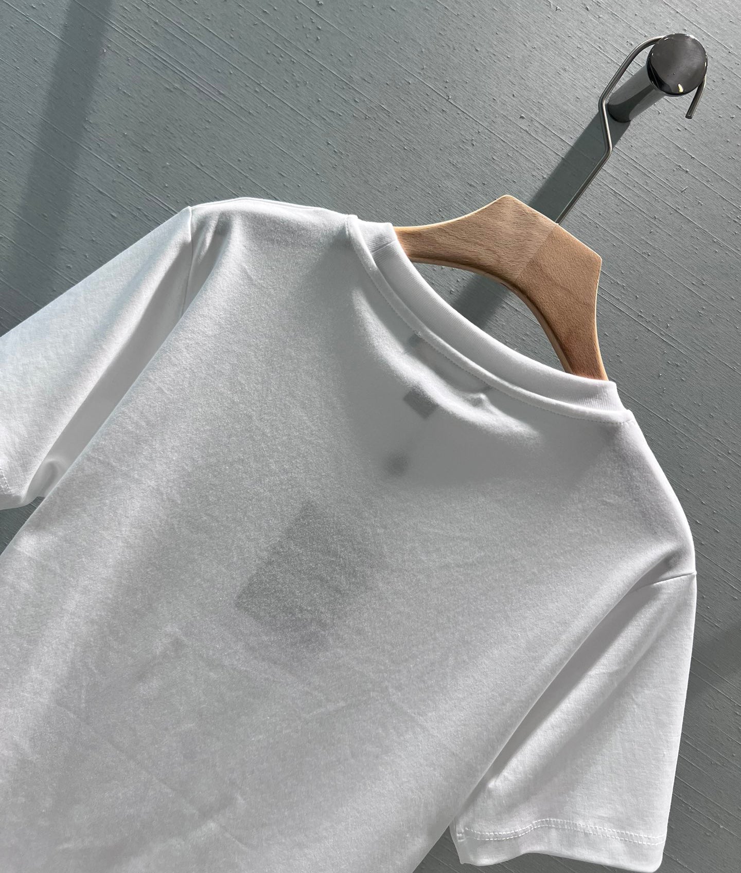 The latest 2024 spring and summer printed collar chain round neck short-sleeved T-shirt. The Circle chain on the neckline adds brand elements. The upper body is full of fashionable and high-end cotton T-shirt. The upper body is slim and fashionable. It can be worn inside or outside in all seasons. Ready in stock On sale S/M/L