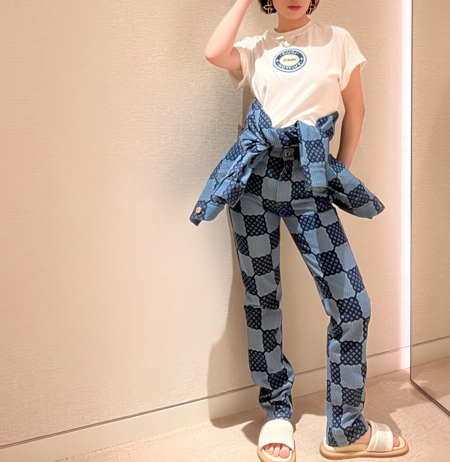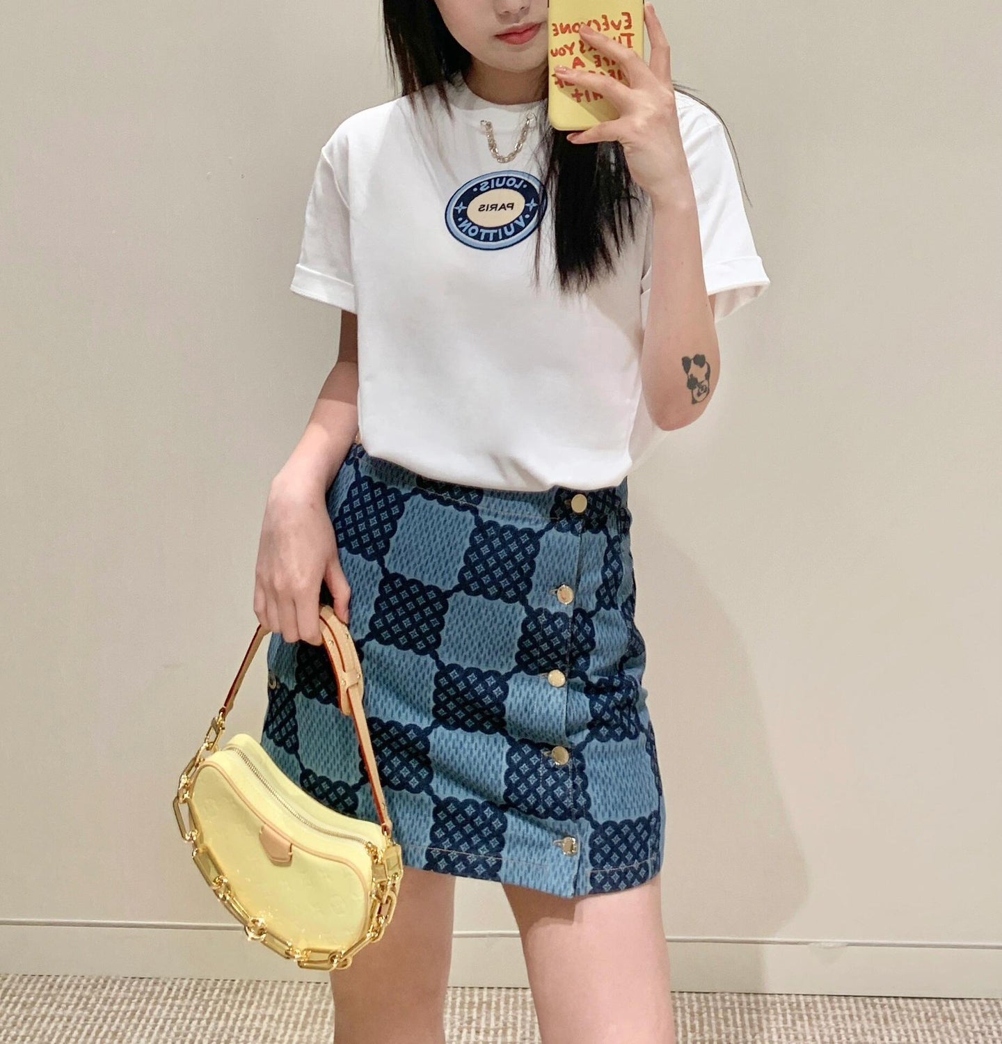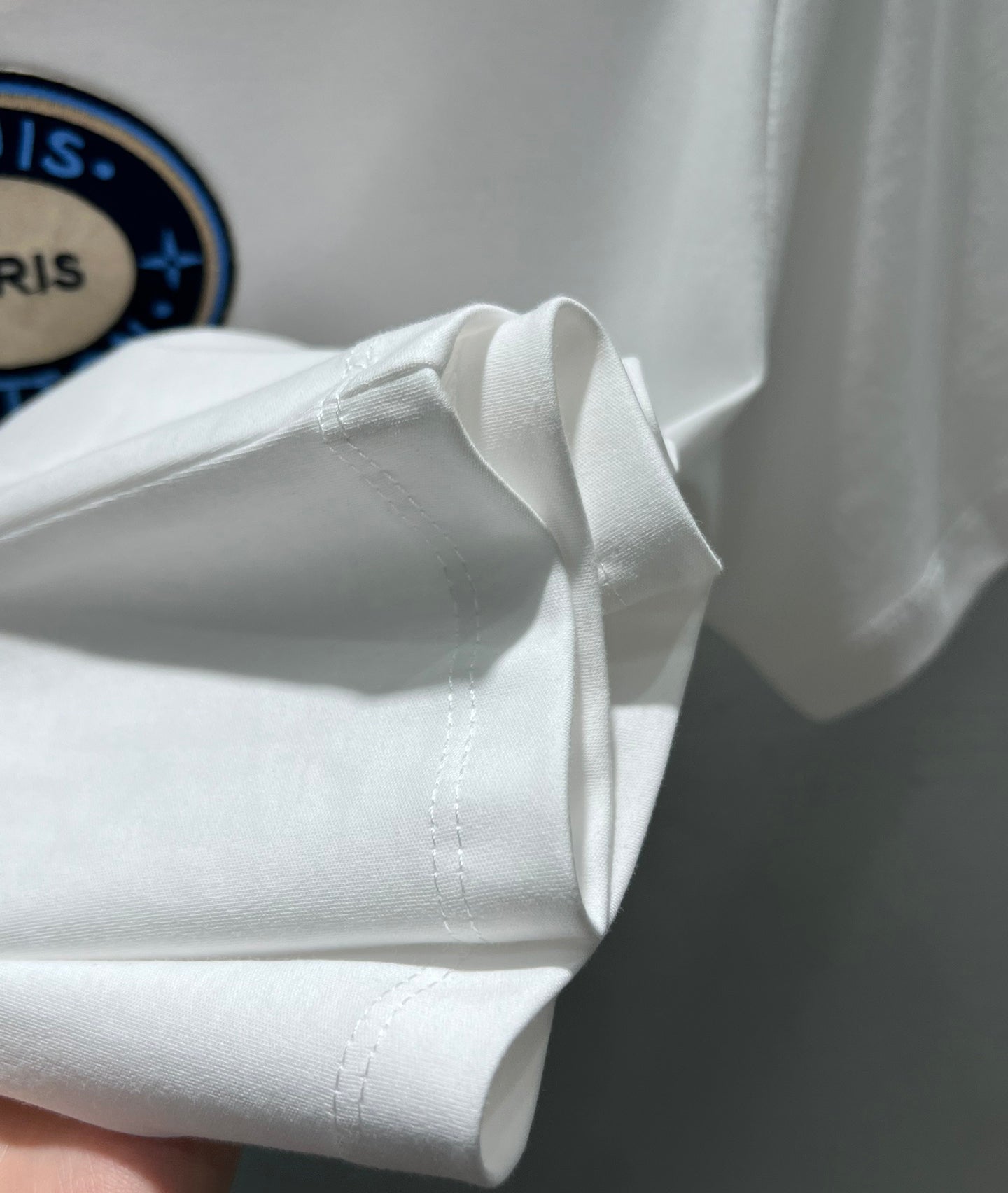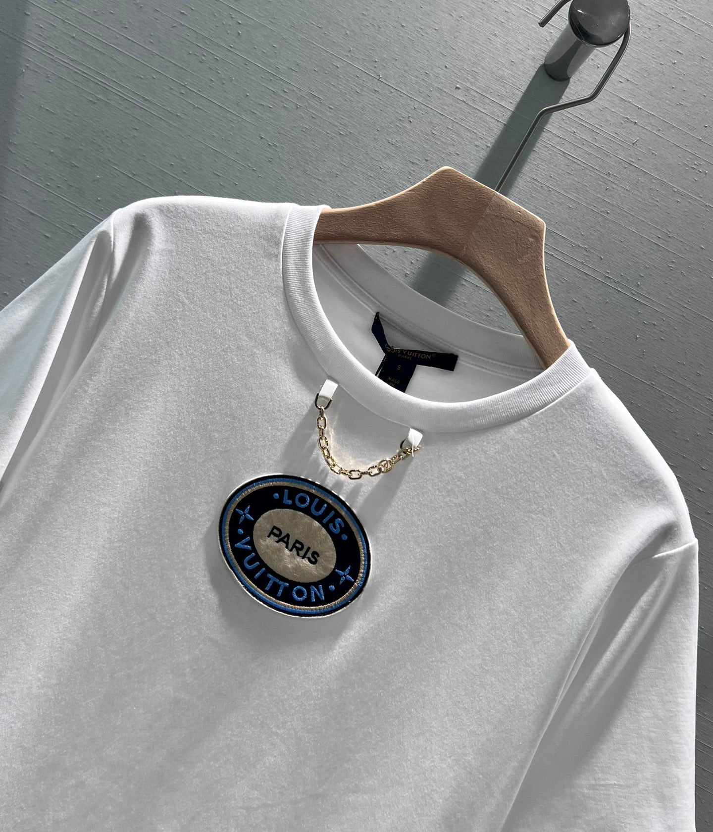 The latest 2024 spring and summer printed collar chain round neck short-sleeved T-shirt. The Circle chain on the neckline adds brand elements. The upper body is full of fashionable and high-end cotton T-shirt. The upper body is slim and fashionable. It can be worn inside or outside in all seasons. Ready in stock On sale S/M/L