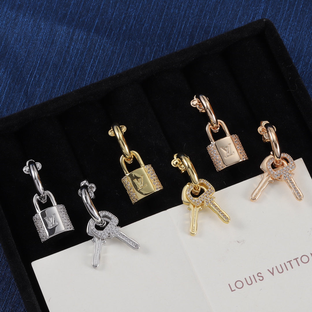 - The distinctive Padlock earrings were inspired by the traditional padlock, a symbol of commitment and security. Styled in gold-tone metal enhanced with sparkling crystals, their asymmetrical design features a padlock engraved with the Initials on one side and two glittering keys on the other. A uniquely glamorous way to wear the signature.