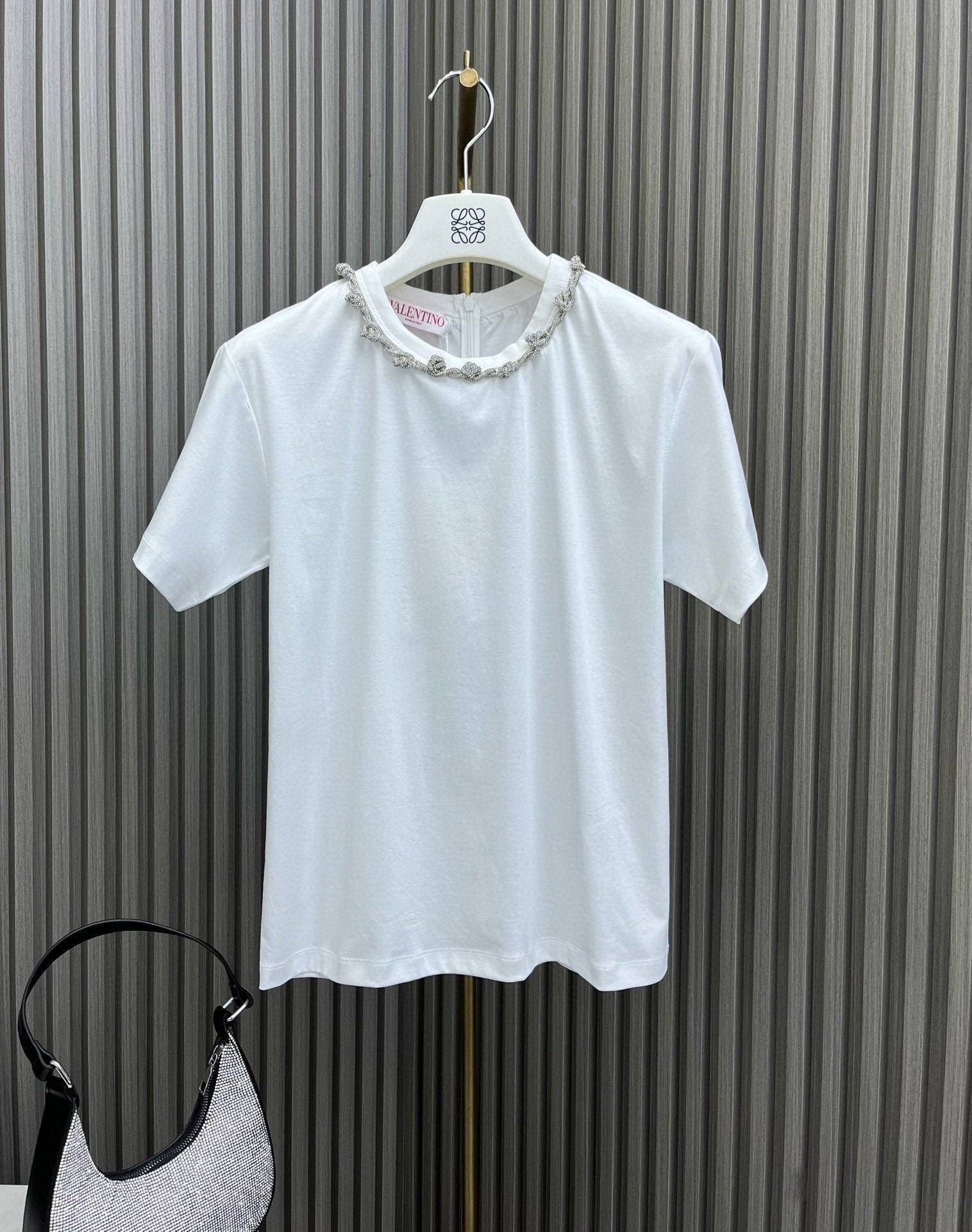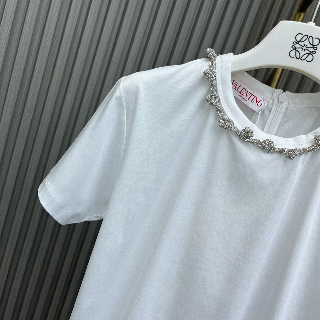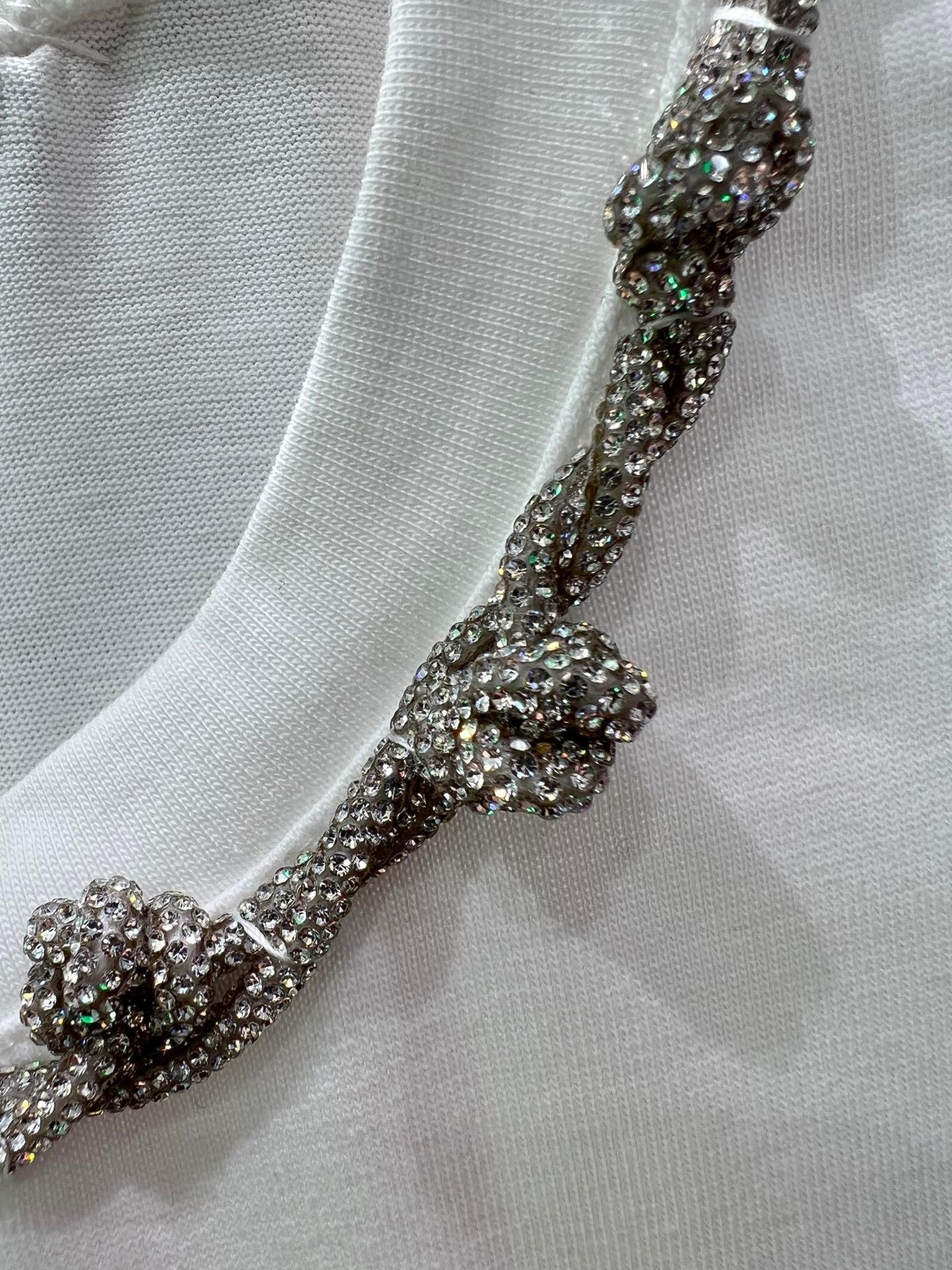 Handmade Rhinestone Round Reck T-shirt