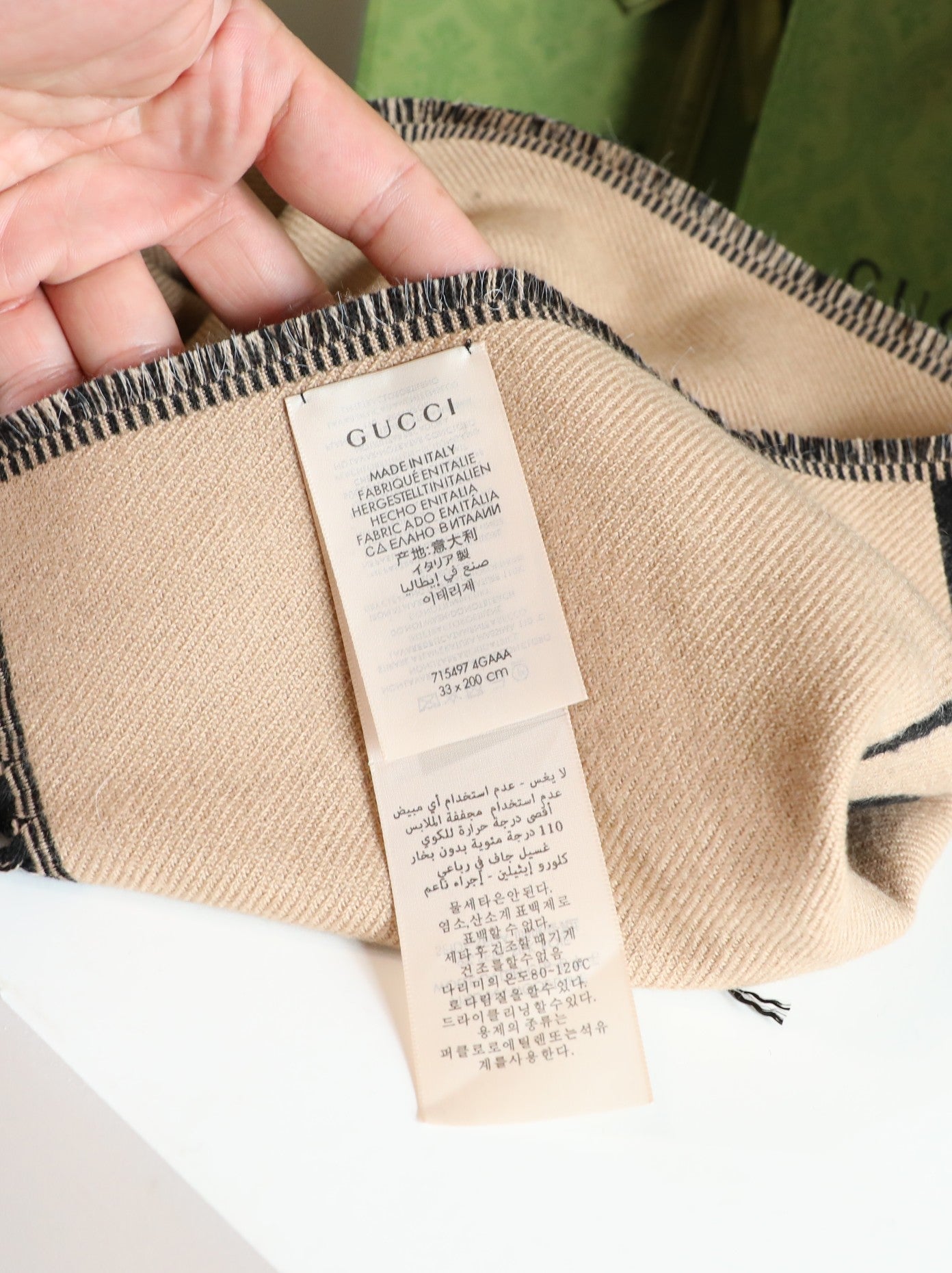- This scarf from Gucci is elevated by a colour-block bi-tonal design elevated by the Double G motif