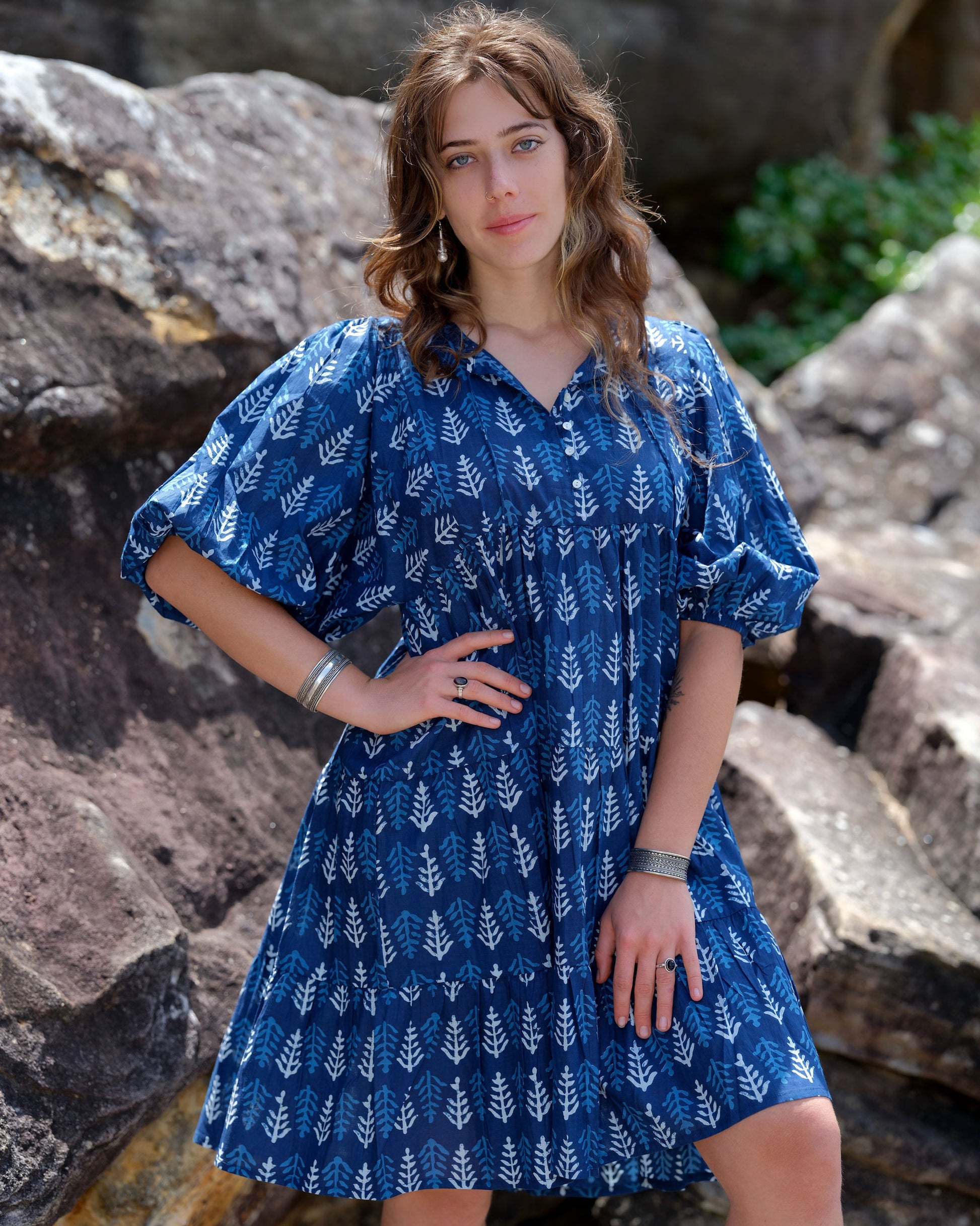 This new Neera short dress in Neela is an absolute beauty! Style it buttoned high for an elevated look, or more relaxed look with the denim jacket and boots. This version of Neera dress is made with slightly thick cotton.