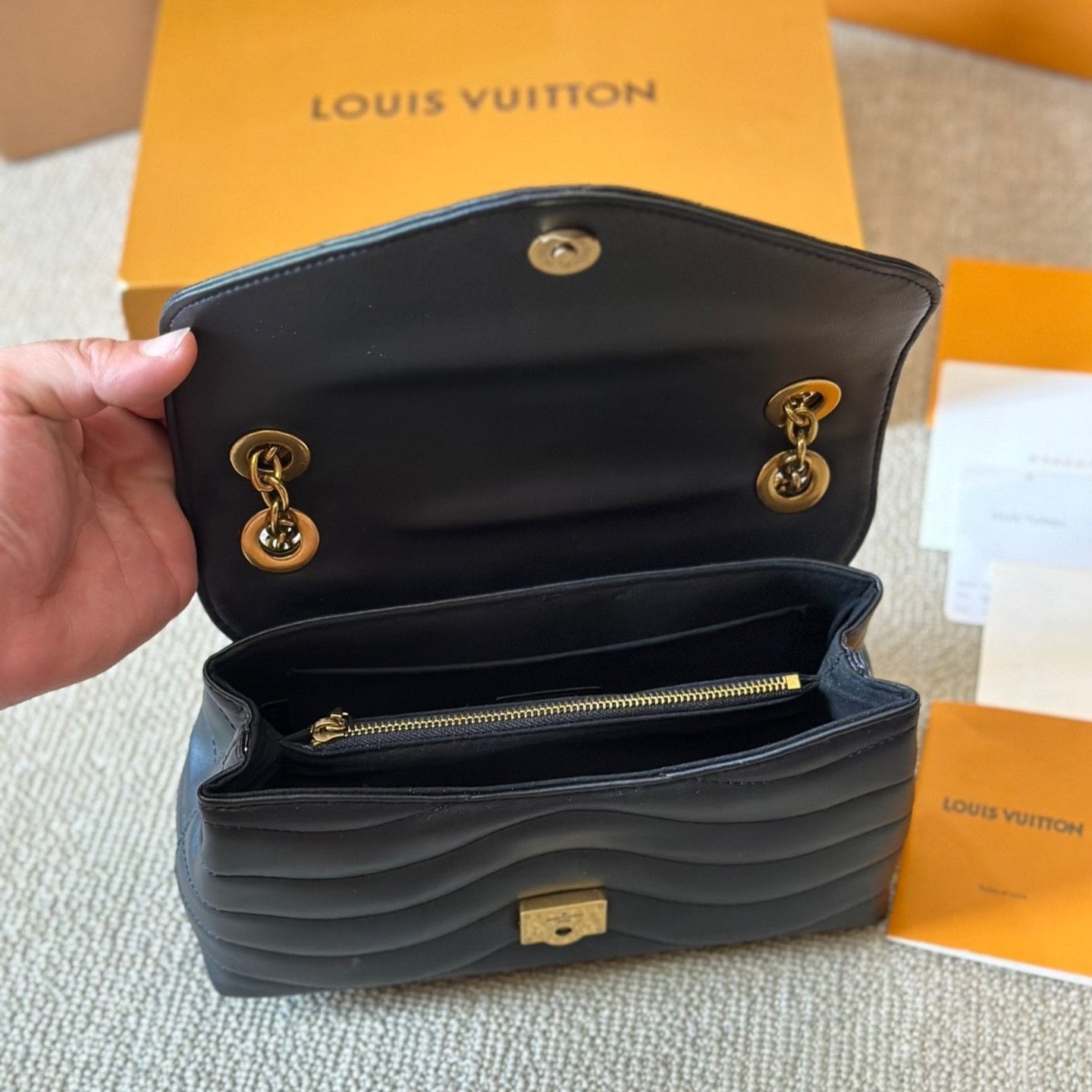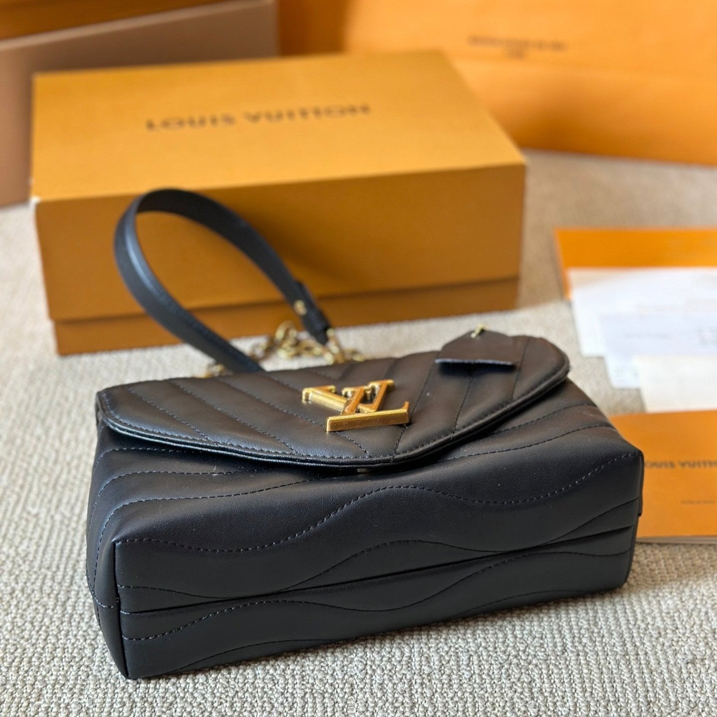 This chic handbag is crafted of smooth calfskin leather. The bag features a gold chain shoulder strap with a leather shoulder pad and gold logo on the front. The bag opens to a matching microfiber interior with a zipper compartment and patch pocket.