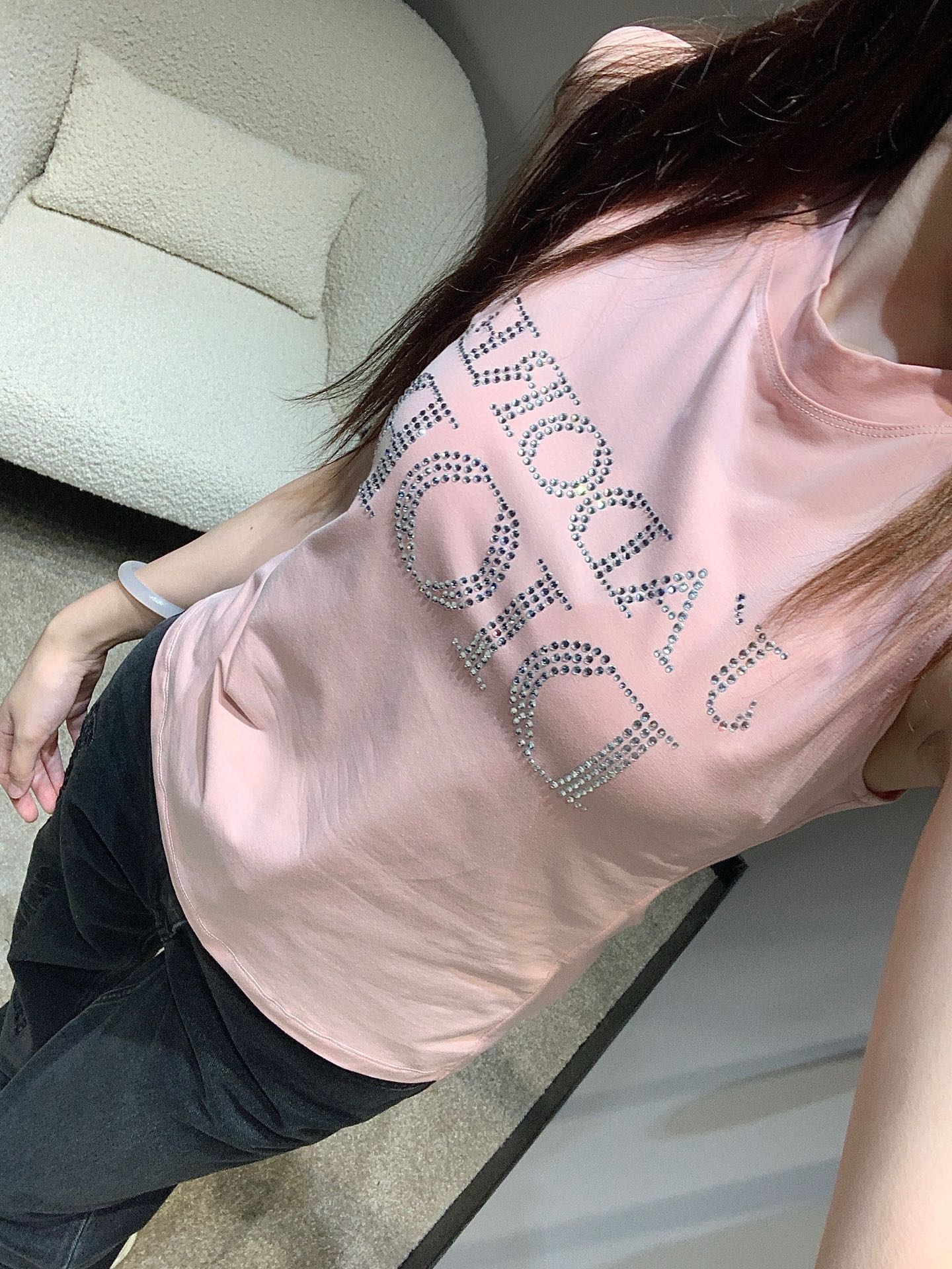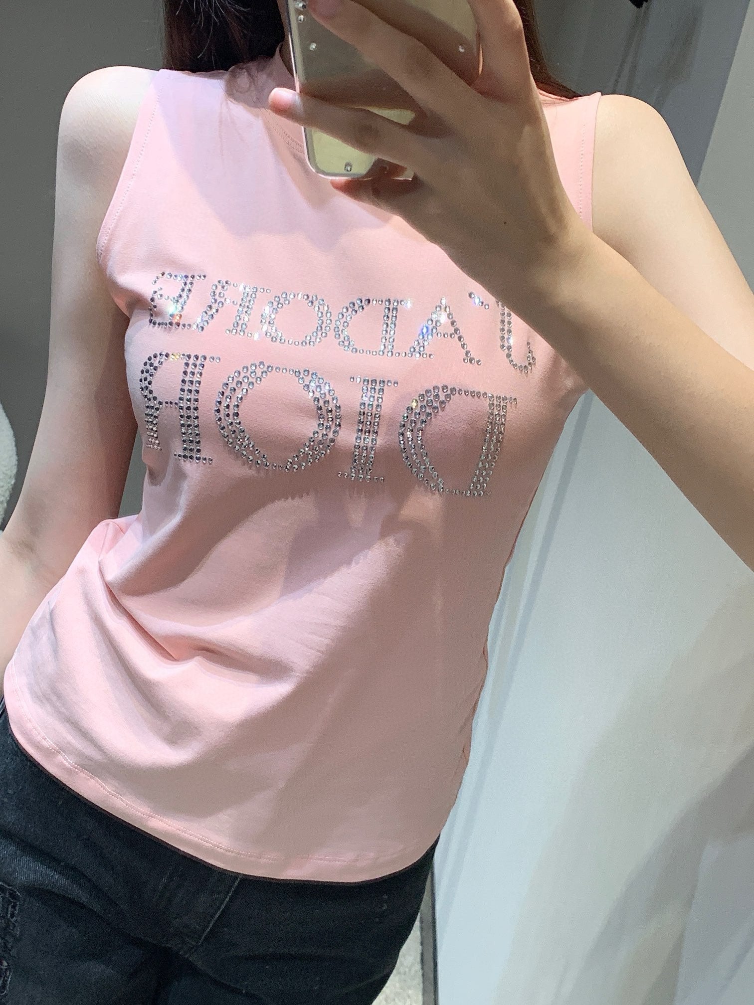 - Second-hand style vintage hot diamond sleeveless vest T-shirt