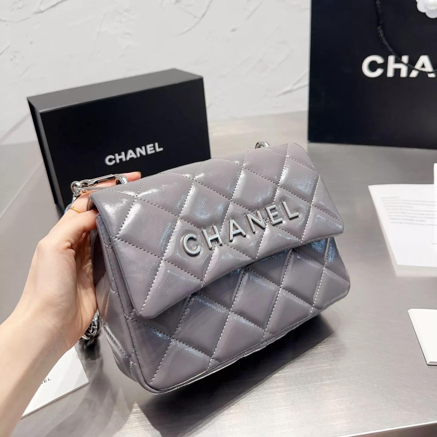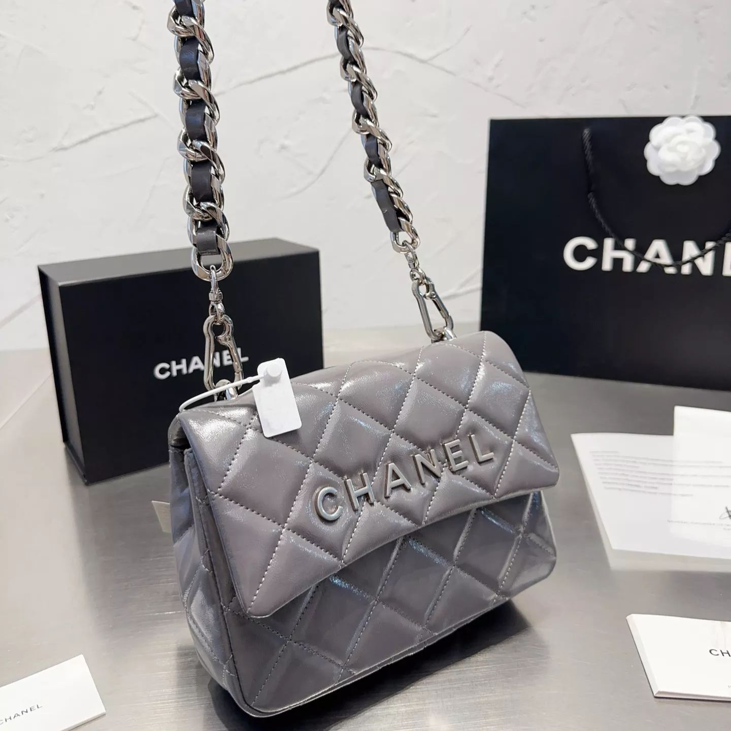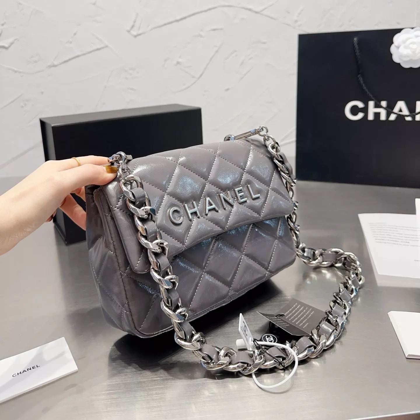 Square Leather Chain Messenger Bag