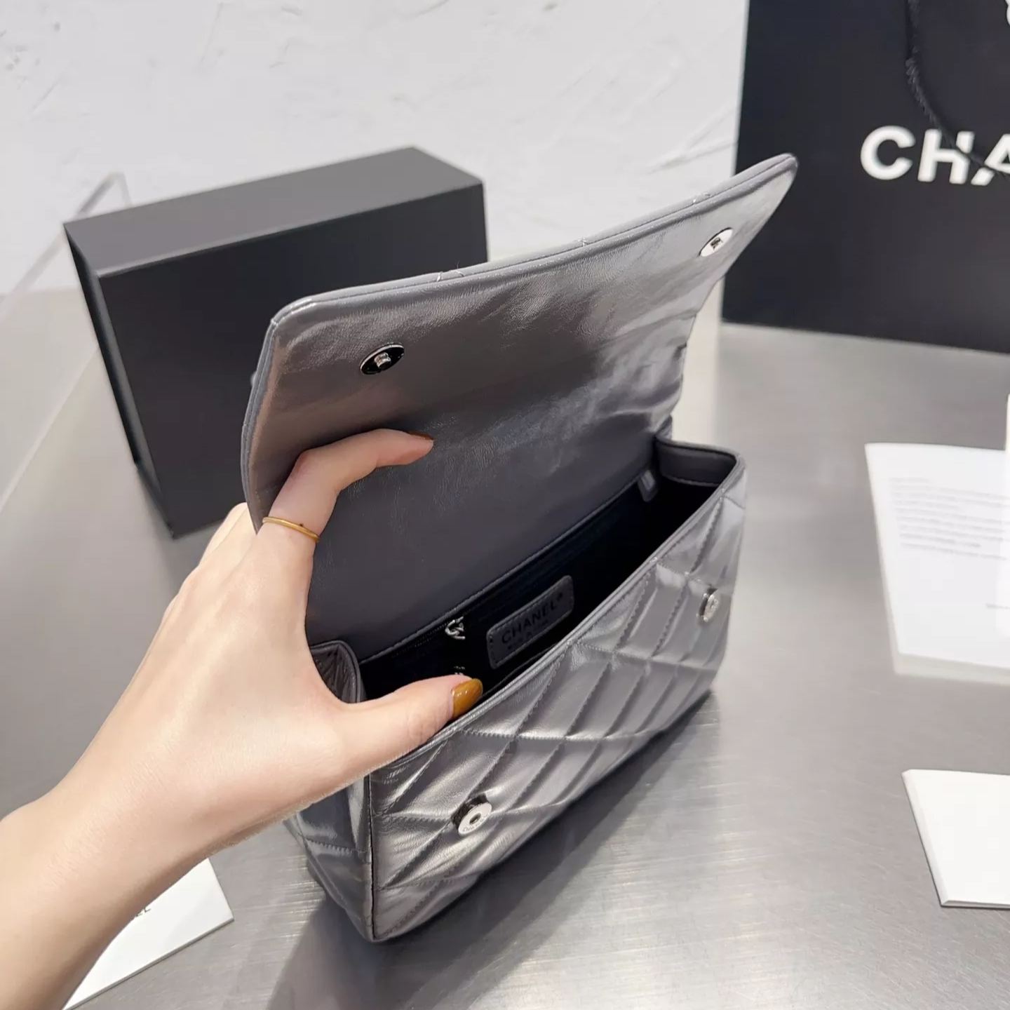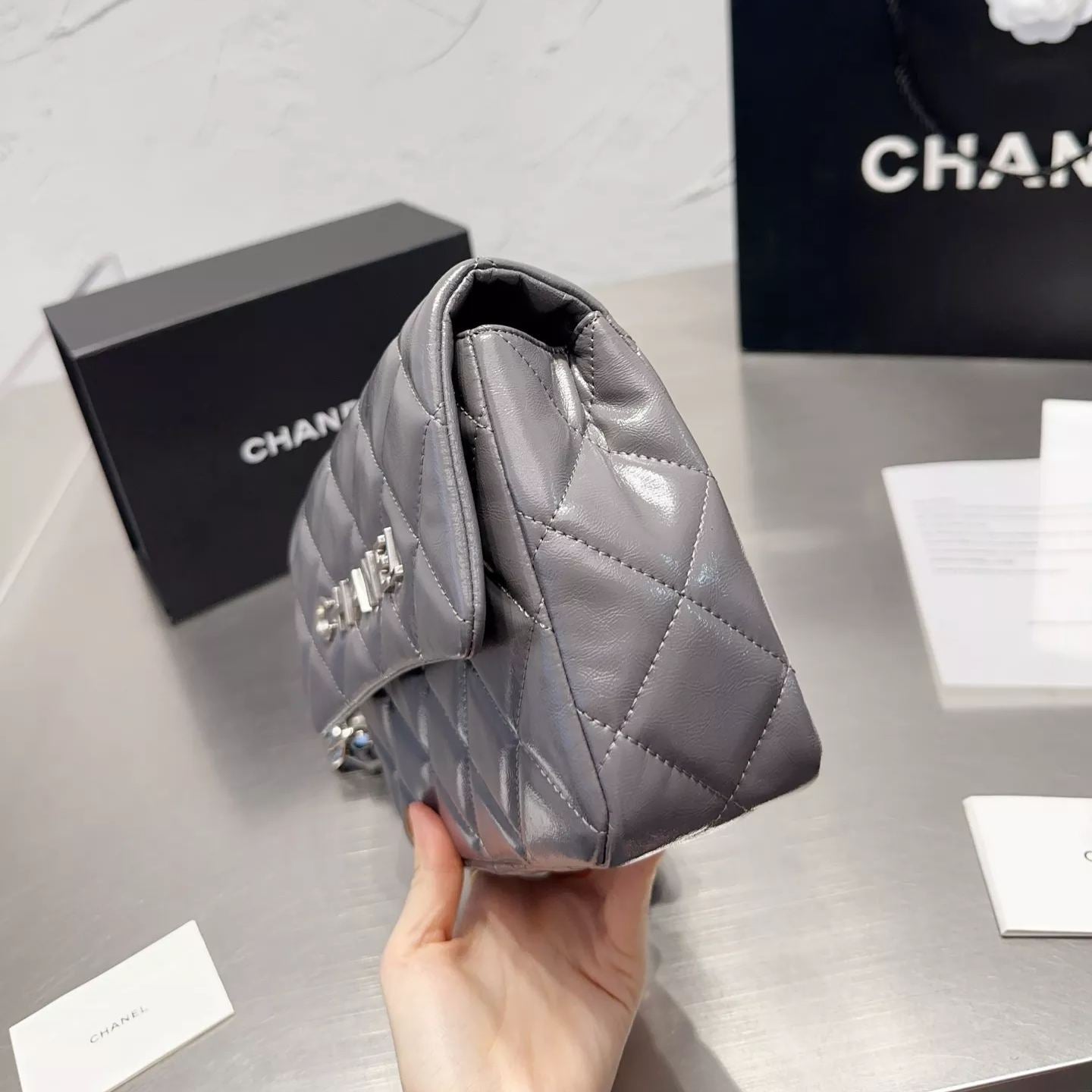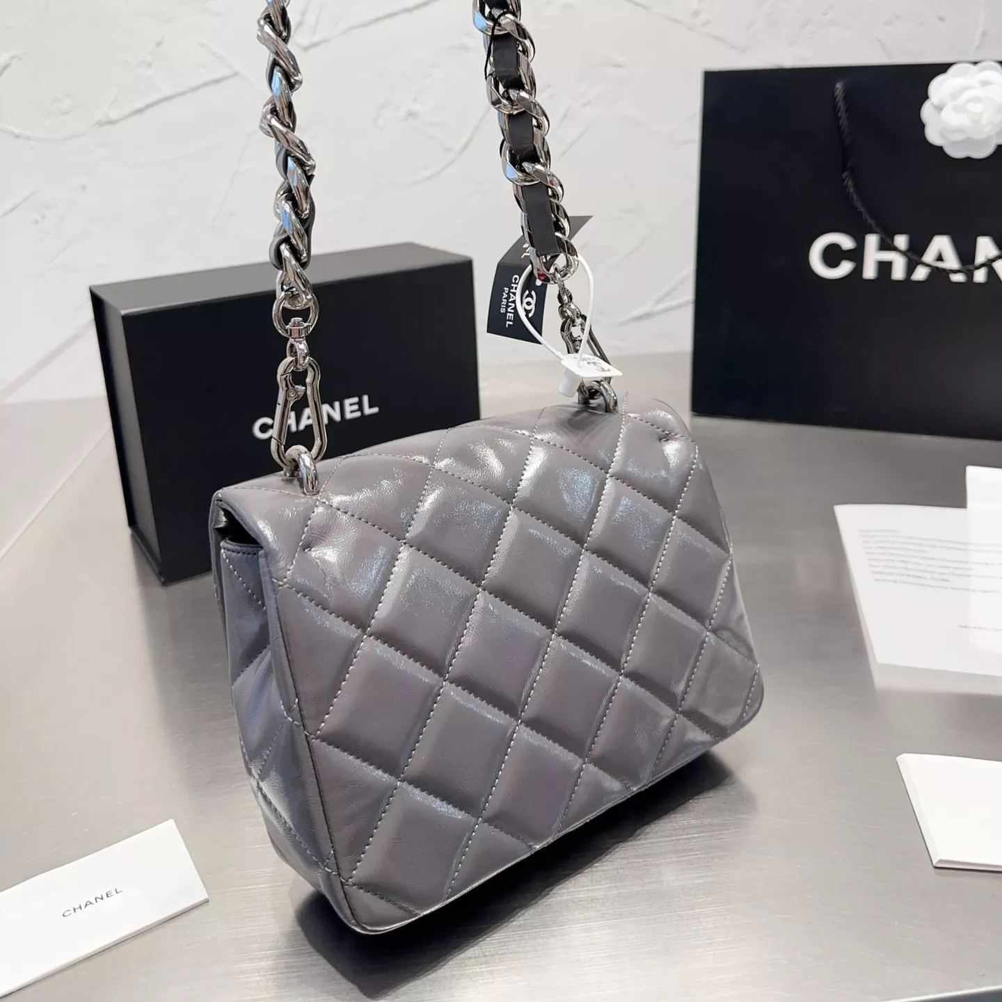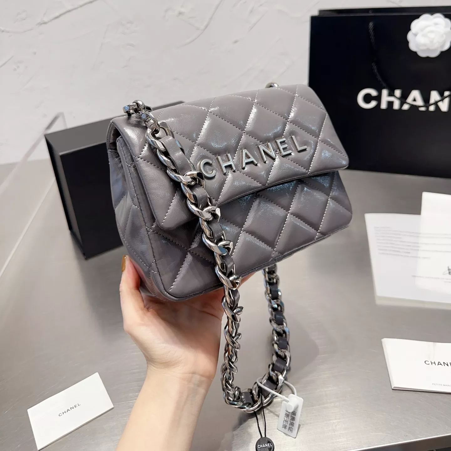 Square Leather Chain Messenger Bag
