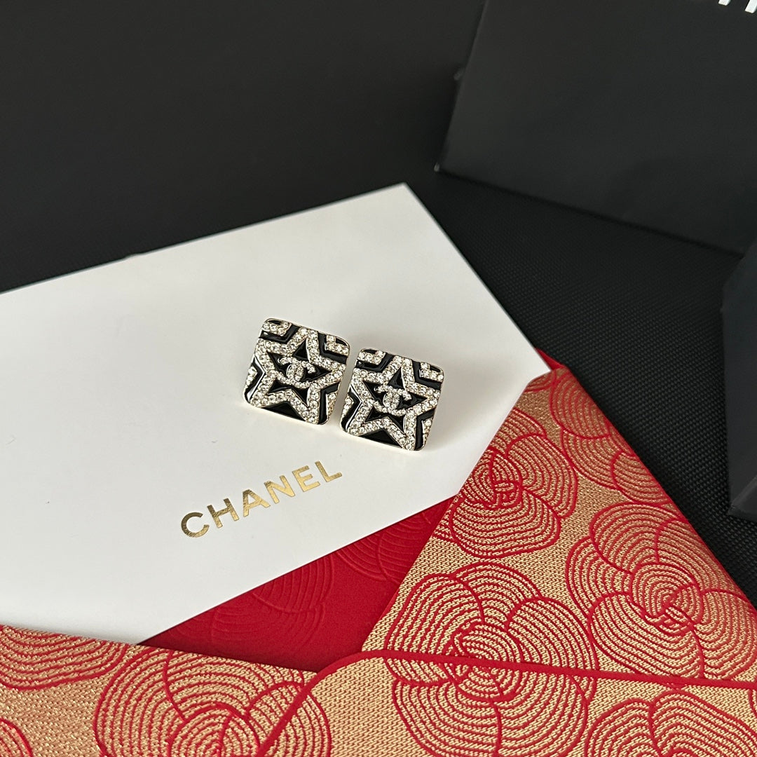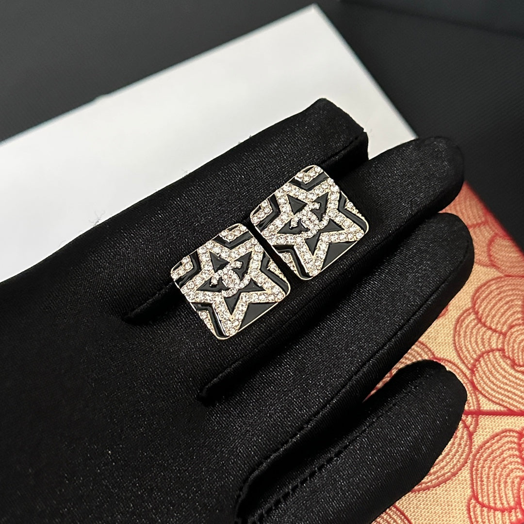Star Embossed Rhinestone Earrings