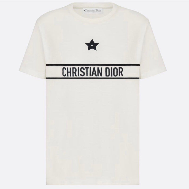 - This T-shirt is an elegant piece with sporty details. Crafted from white cotton jersey, it features an embroidered star pattern on the front, embellished with the brand's signature.