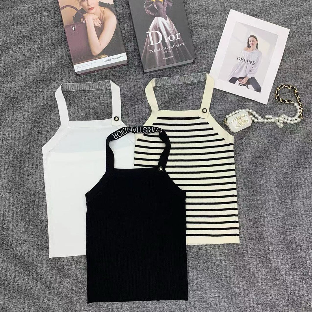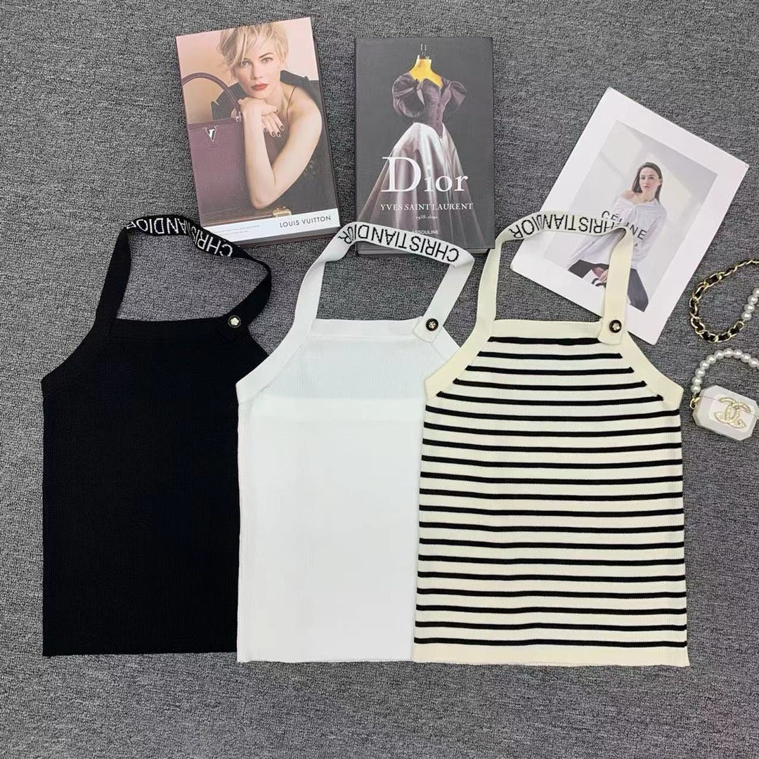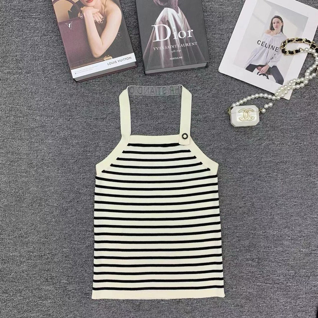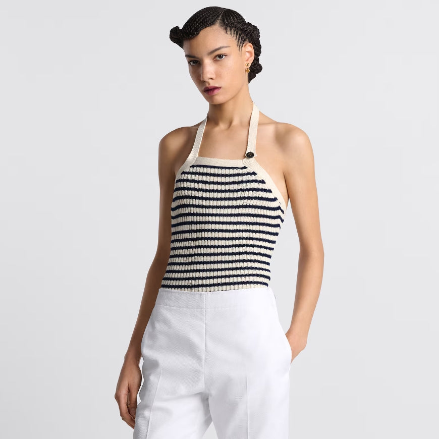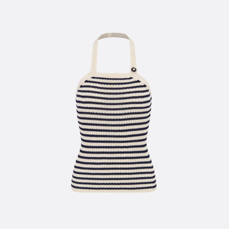 - Part of the brand's exclusive collection, this stylish vest is ideal for summer. Crafted from cotton ribbed knit with white and navy graphics, it has a square neckline and black branded buttons with gold-toned stars. Backless style with branded lace-up straps. Pair it with other items for a refined look.