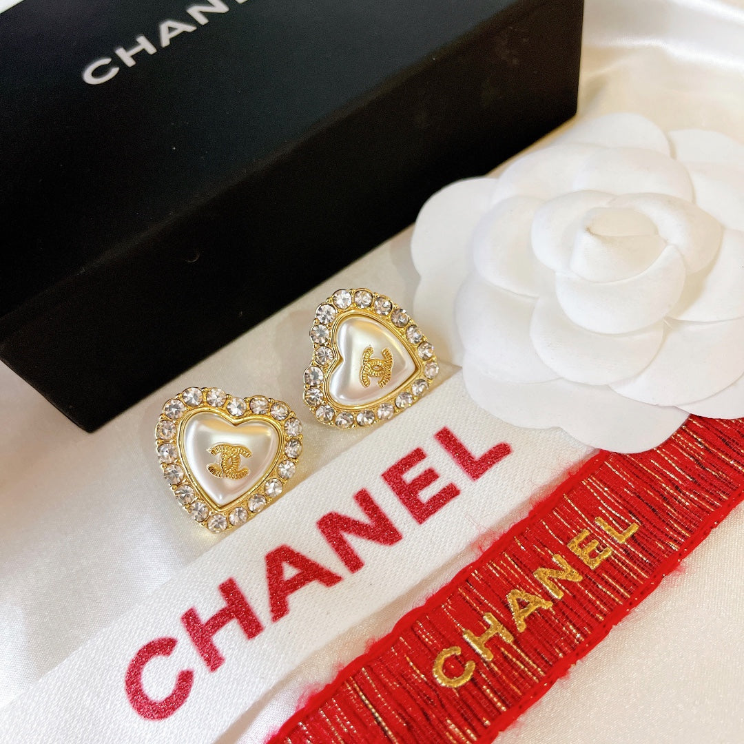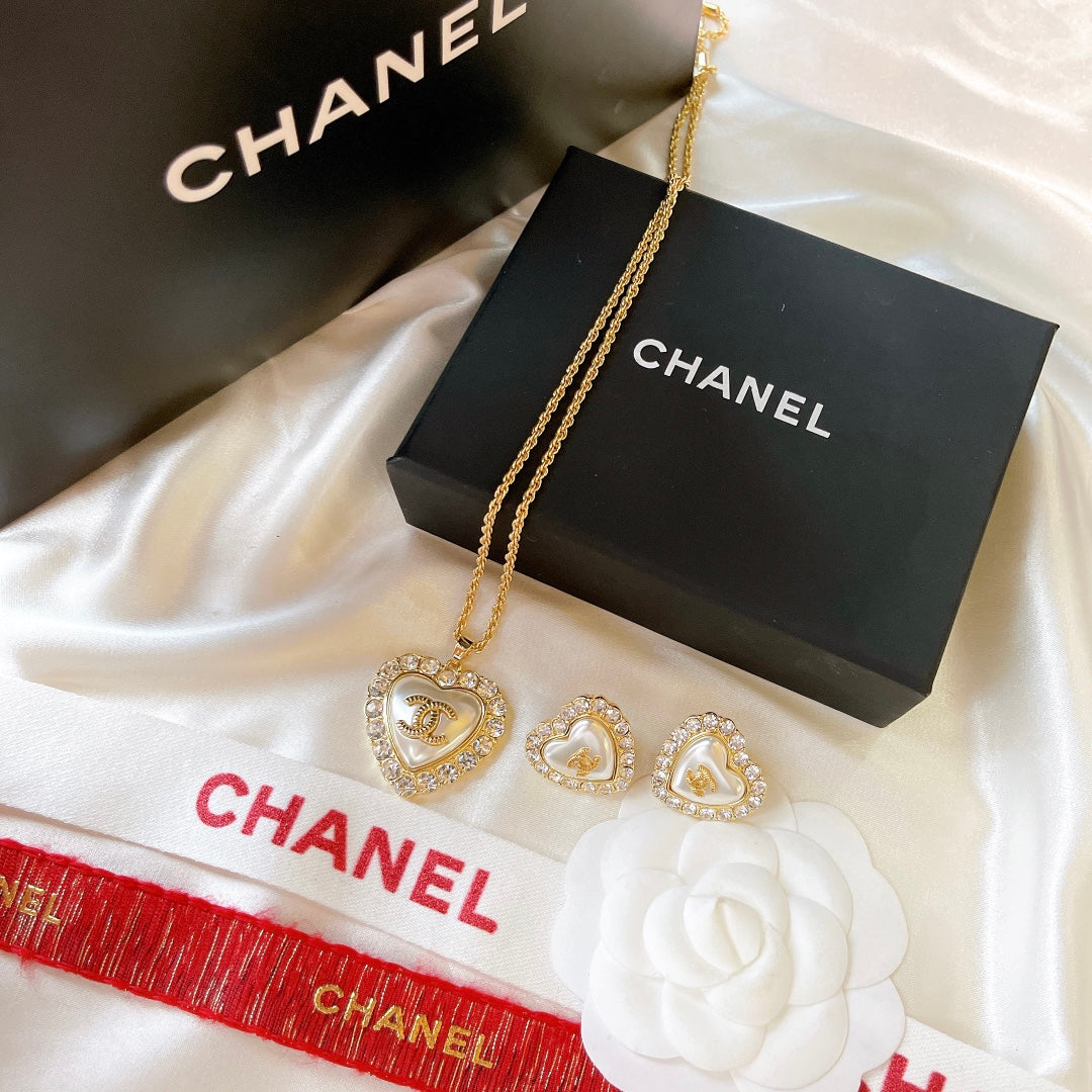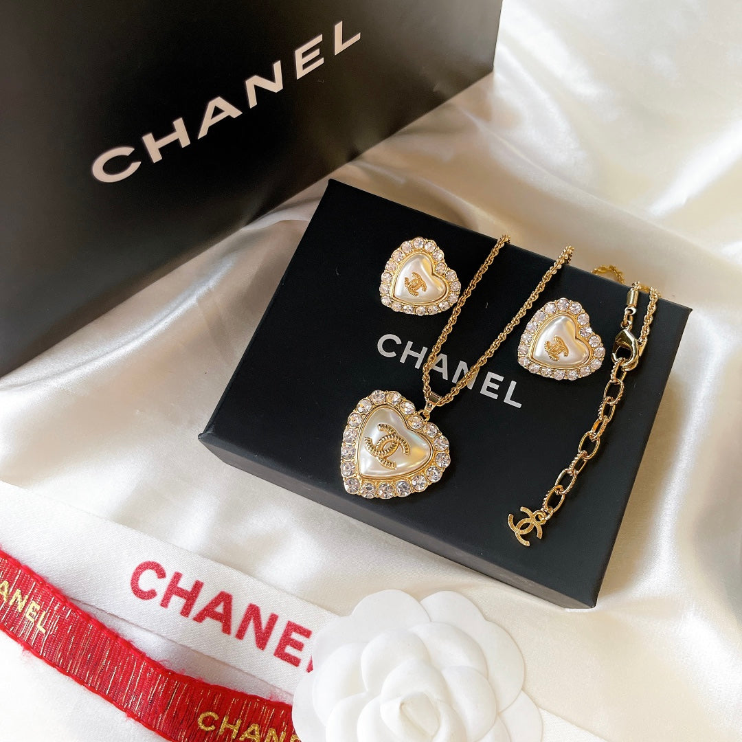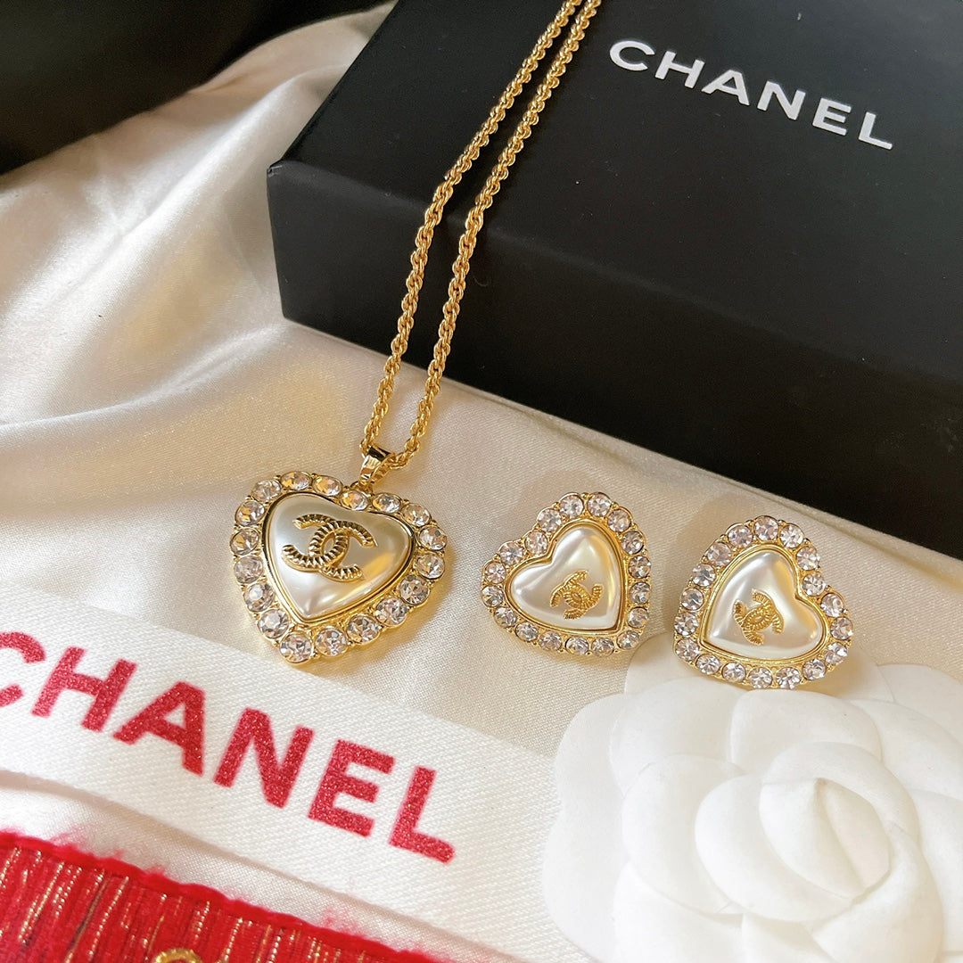 Vintage Diamond Pearl Heart Earrings Necklace Set